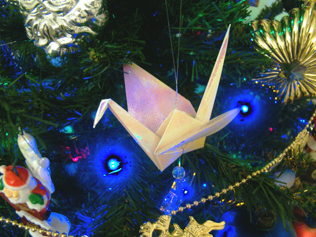 Encomenda realizada: Decoração para uma festa de formatura Centros de mesa (dois modelos de vasinhos de origami com flores Iris de 4 e de 3 pétalas, e ramos de flores Iris); Flores porta-vela (Flor-de-lótus em origami modular que forma espaço interno permitindo o uso de uma vela rechaud à pilha); e Móbiles de origami (não aparecem nas fotos). - Obs.: As estrelinhas chinesas da sorte que aparecem pendentes e sobre as mesas foram executadas pela cliente formanda que gentilmente cedeu algumas fotos da decoração para o blog (abaixo).
